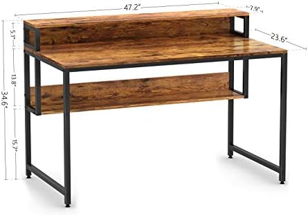 Amazon Com Cubiker Computer Home Office Desk 47 Small Desk Table With Storage Shelf And Bookshelf Study Writing Table Modern Simple Style Space Saving Design Rustic Home Kitchen